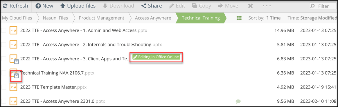 - If a user tries to open a locked file with Cloud Edit, the file will not be opened on the desktop. Instead, it displays in one of Access Anywhere’s online viewing services, such as the Microsoft online viewer for Office documents.