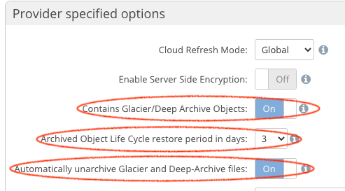 In most cases this first option should be turned on for any provider that may contain objects stored on the Glacier or Glacier Deep Archive storage tiers.