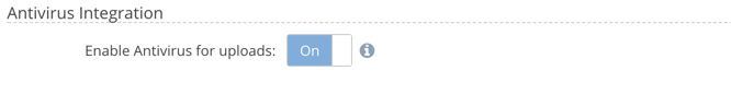 The virus scanning of uploads is a configuration option for organizations. The option is available when added to the user package.