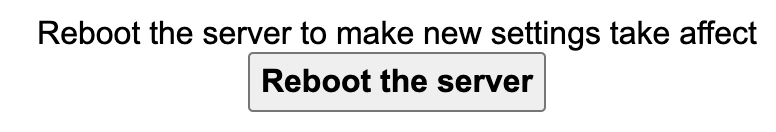 Follow the prompts on the page to reboot the appliance. If you are not doing this immediately stop the Config Server by typing Control-C in the terminal window.