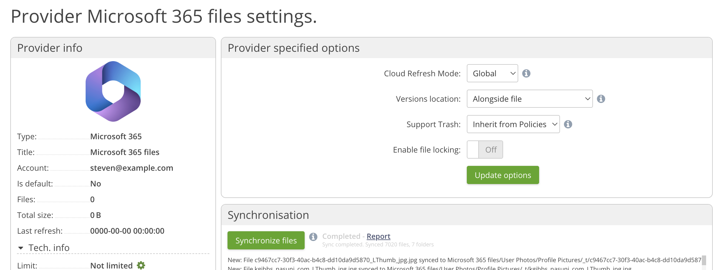 File Locking is no longer supported for the Office 365 provider. Please disable on the provider settings page. The option will be removed from a future release.