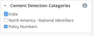 When searching by Content Detection Categories, check the category or categories for which you want to search: