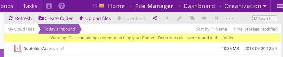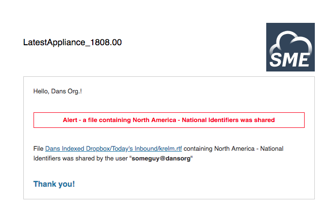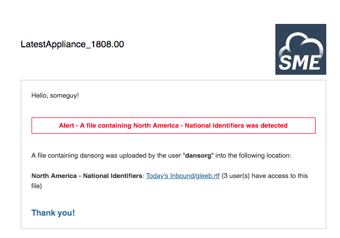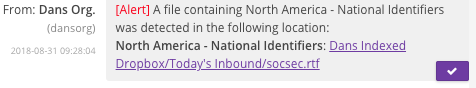 Administrators and Content Discovery users are notified when a file with matching content has been detected.