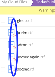 While a file is being scanned and indexed, a visual indicator that the scan is in progress appears next to the file name in the File Manager. Also, a warning message that a scan is in progress is shown at the top of the directory listing in the File Manager.