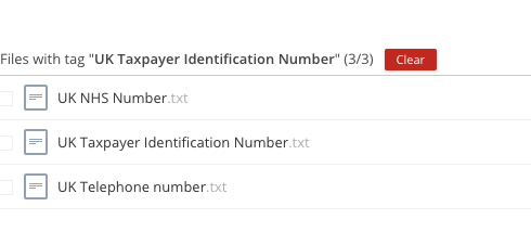 Our example company operating within the GDPR might have a detector for UK NHS numbers and a detector for Spanish NIF numbers, among others. Our example sales organization company might have detectors for a specific set of SKUs
