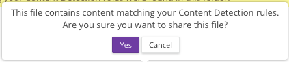 A confirmation dialog is presented to users who share documents that contain matching content: