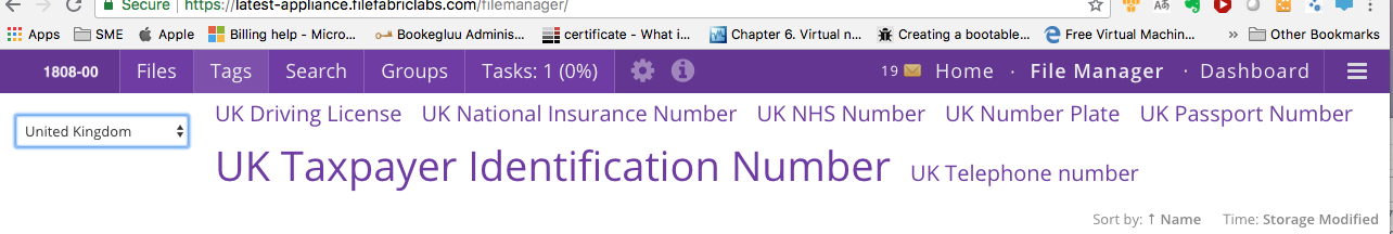 Each of the Content Discovery Groups belonging to an organisation is treated as a tag classification and shown in the list of tag classifications on the File Manager’s Tags tab. As with other classifications, when a Content Detection Category is selected from the classifications list on the Tags tab, the tags belonging to the selected classification will be displayed in a tag cloud: