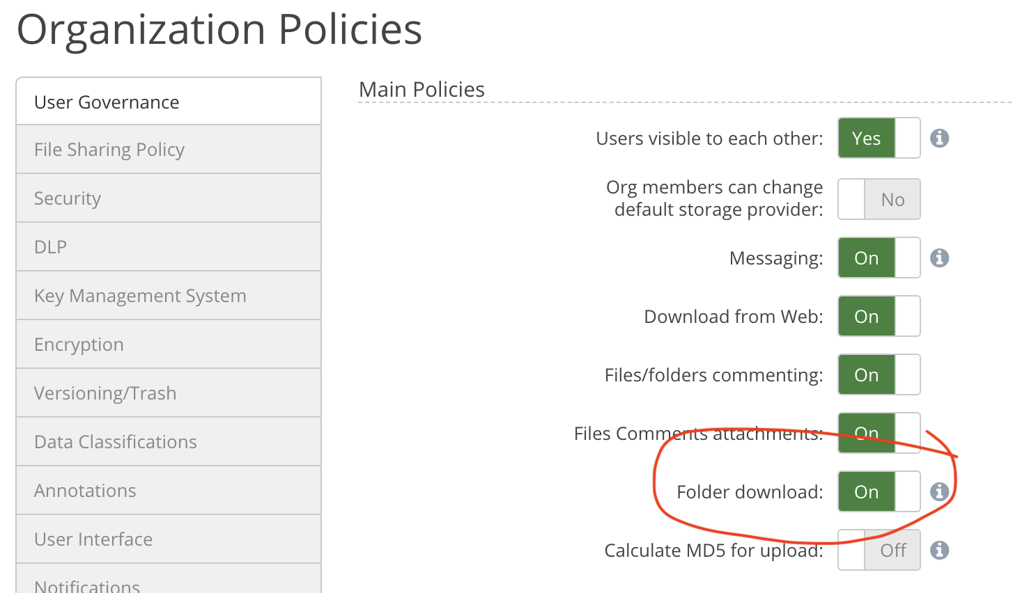 Ensure that in the Team Admin account, from Organization»Policies» User Governance the Folder download option is turned On.