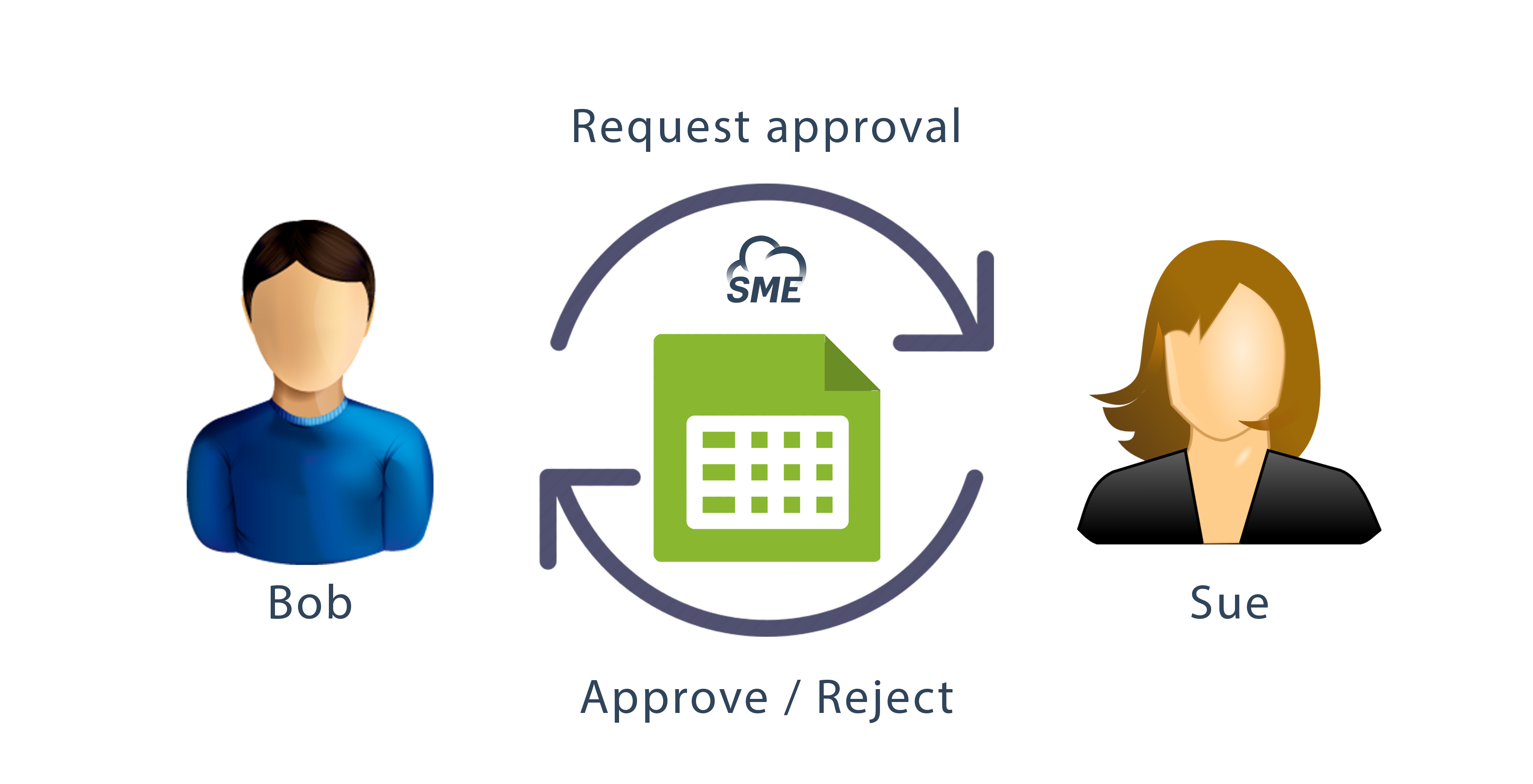 A moment later Sue sees a message in her browser and her email inbox telling her that Bob has requested that she approve a file.
