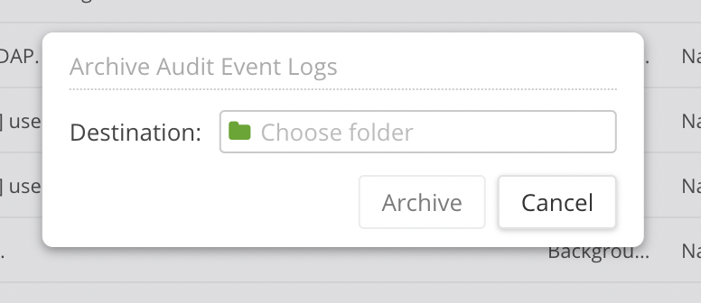 To archive the audit log entries, select Archive from the pulldown menu and a confirmation box will be displayed: