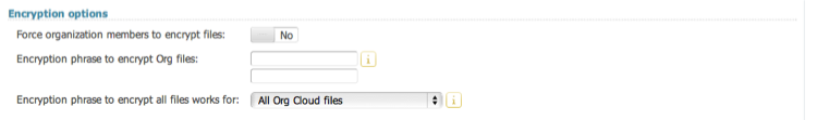 Cloud Admins can choose for all files to be encrypted when stored on private / cloud storage. This encryption is AES 256 bit military grade encryption.