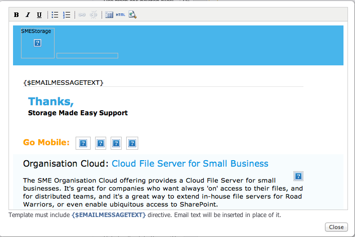 Emails can also be completely branded as to appear to being sent form the company. These apply to shared files, notifications etc.