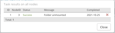 To see details of the execution of the task on each node, click on the Task Title. A window will open listing the nodes on which the task ran and the result on each node.