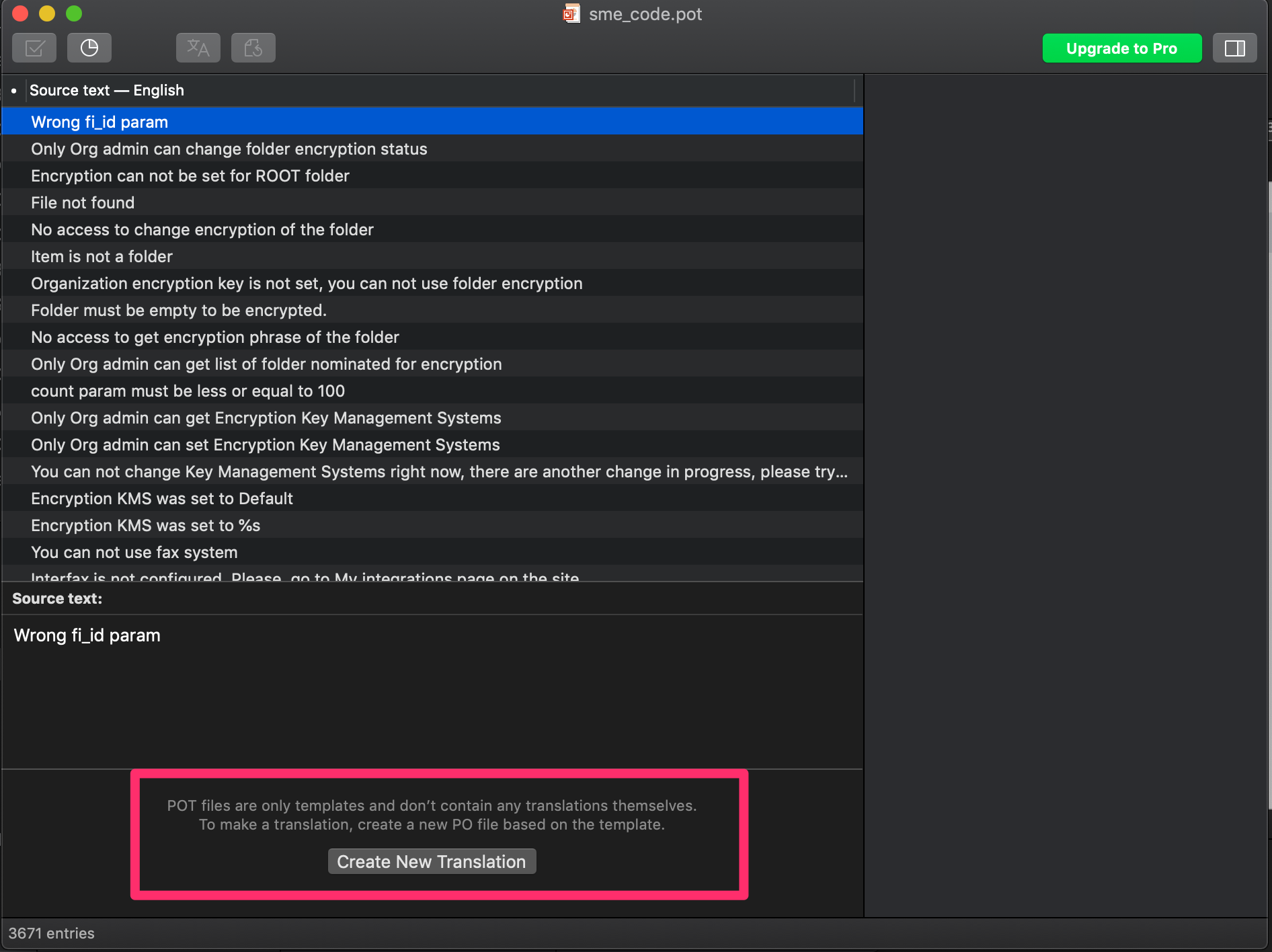 To do this, download the new POT files. For each POT file, like sme_code.pot, you will need to merge it with our previous translated PO file.