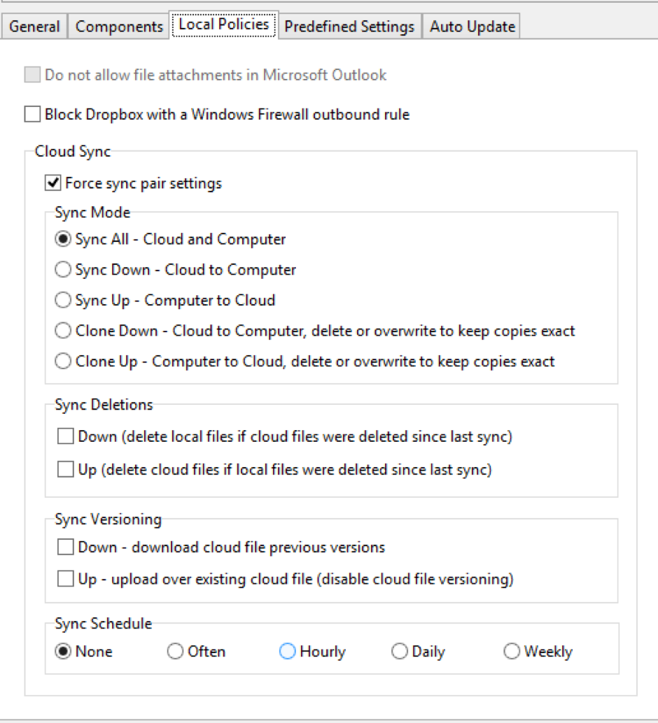 - Up – upload over existing cloud files (disable cloud file versioning)