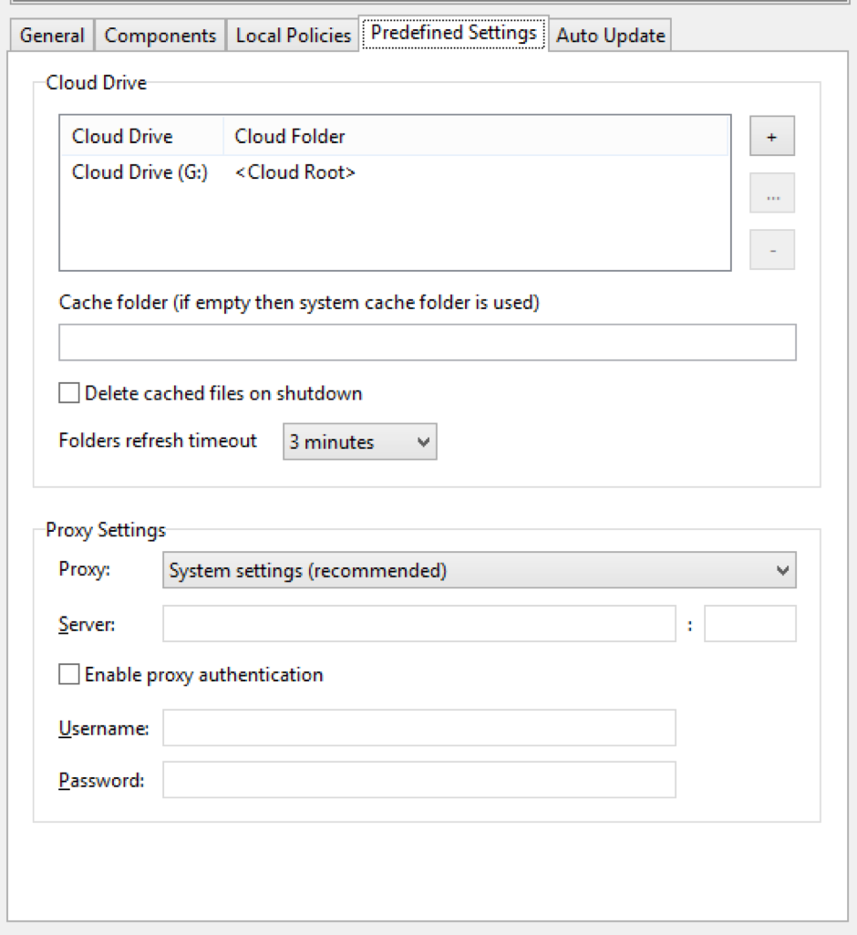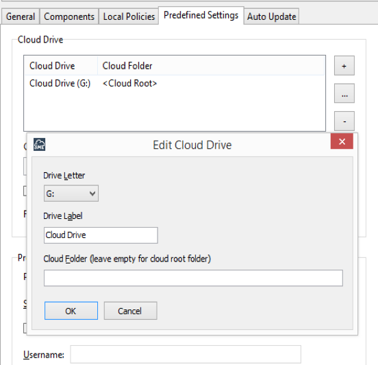 - Cloud folder (leave empty for cloud root folder) to map the drive to a specific folder from Cloud.